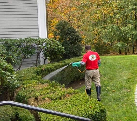 We apply protective antidesiccant sprays to evergreen trees and shrubs before winter. This treatment helps prevent moisture loss caused by cold winds and freezing temperatures, keeping your plants healthy through the harshest months.